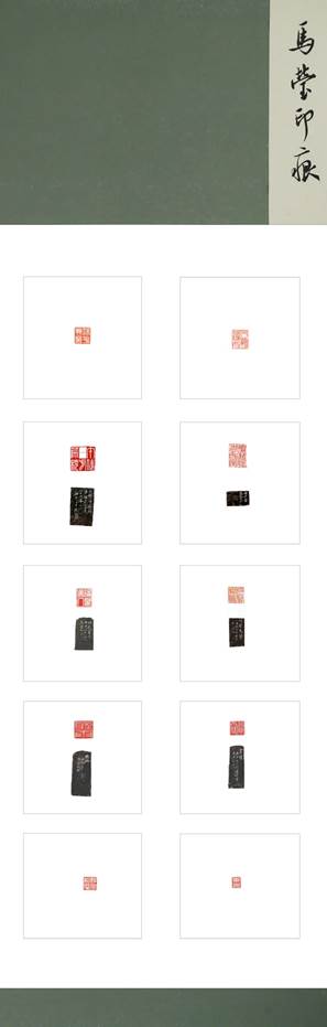 创作说明:《马莹印痕》形式上用四尺对开的条屏,打上界格,比较平整规矩和印章较统一。共十方印,在印面大小、朱白、内容上,皆是细心挑选设计。但不足之处仍然颇多,仍需要苦心钻研。
