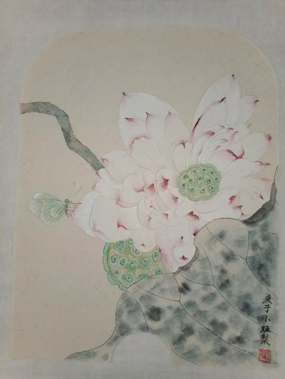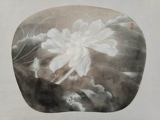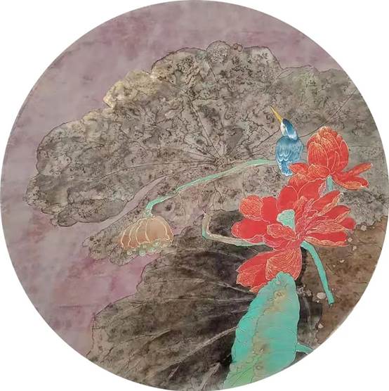 创作说明:创作《闻君有扇》通“文君有善”,表达“与人为善”的精神。是一组扇面花鸟画系列作品,主要围绕莲花题材。莲花寓意出淤泥而不染,在光明与晦暗中拔节而生。在创作中,我探索运用各种传统和现代绘画材料,突破了荷花固有色彩和空间质感,使荷花主体表现绚烂至极,荷叶归于平淡自然。整组作品呈现出丰富的节奏感与生命感。