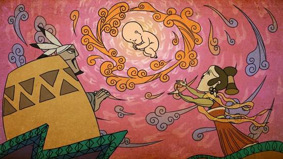 创作说明:毕业创作是以夫余始祖东明王的传说为蓝本进行构思的,通过讲述夫余国的故事,使观众了解到中国东北地区是具有独特地域文化和历史沉淀的。作品中主要的造型和视觉效果,是取材自夫余古国的出土文物—陶器,提炼具有夫余文化特色的造型特征,有机的结合到人物造型和画面中,使毕业作品由内而外形成统一状态。借此传承和弘扬中国东北地域文化。